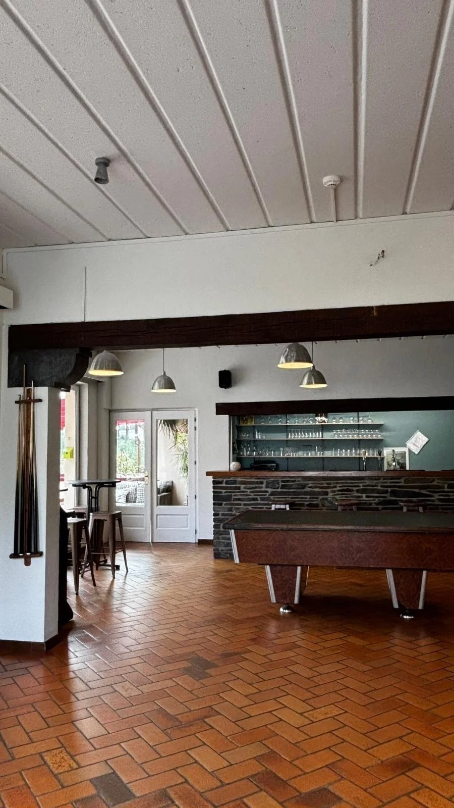 1 living avec un grand bar et pompes à bière, billard, feu ouvert, coin TV et DVD,